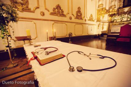 A cerimônia foi na Igreja Nossa Senhora do Carmo, que igreja linda e que cerimônia fofa!!! A Ana e o Pedro são médicos, e usaram estetoscópios durante os votos. Não é demais?? O Frei Jonathan celebrou uma linda cerimônia, super emocionante!!