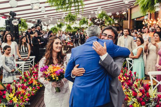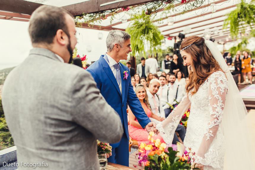Não importa se faz sol ou chove! É tanta felicidade, que contagia! Sorrisos emocionados, olhares cúmplices, abraços calorosos! Sem expectativas demais: Se fizer sol – amor! Se chover – amor também! Deixe fluir! Viva e sinta a energia que um dia como esse tem! Abra mão do controle e se entregue à oportunidade única que é poder festejar o amor que já deu certo!