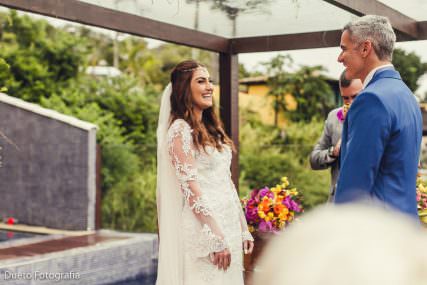 A Luana e o Elvys se conheceram num chat do Big Brother Brasil, pois é, o destino sempre dá um jeitinho!! Eles são lindos, bem humorados e mereciam realmente se encontrar! O universo não brinca em serviço!! Eles aproveitaram muito! Namoraram, dançaram e se divertiram! Curtiram a presença dos amigos e nós curtimos com eles!! Um casamento em Búzios, no Costa do Sol Hotel Boutique, leve e feliz!!